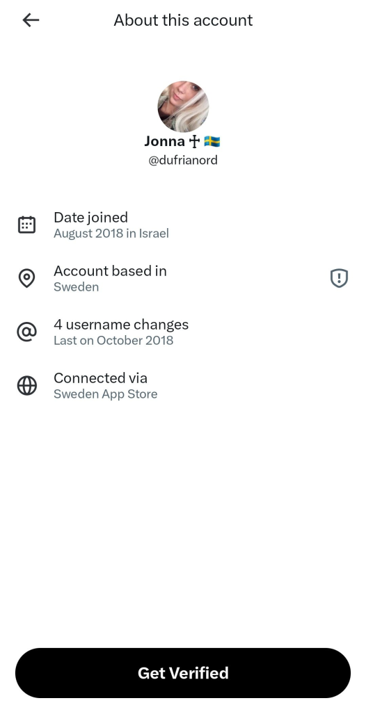 The feature, accessed by tapping the “Joined” date on a profile, displays the account’s base country or region, join date, username change history, and connection method (e.g., via an app store). While X aimed to curb scams and bots, the initial rollout allowed users to check others’ locations, leading to discoveries like the account @Jonna-a profile promoting “Aryan Jesus” narratives and “we wuz hebrews” disinformation-being created in Israel. Such accounts, often with large followings, appear designed to infiltrate and subvert White nationalist communities, pushing Zionist-aligned messages while masquerading as authentic voices.