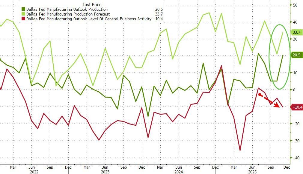Dallas Fed Manufacturing Survey Sees Production Soaring As Tariff Terrors Fade