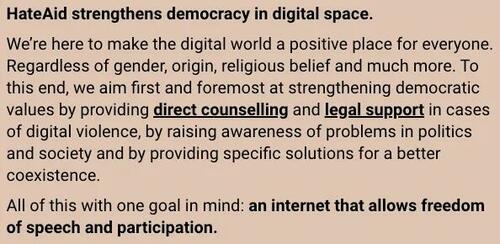 Another “trusted flagger” is HateAid, which received its certification in June after proving its bona fides in other aspects of Germany’s censorship apparatus since its founding in 2018, garnering at least $5.2 million in government funding, according to liber-net.