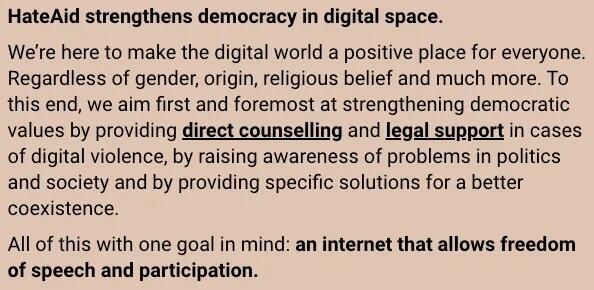 The CEO of HateAid, Josephine Ballon, was part of the 60 Minutes piece mentioned above. She declared that “free speech needs boundaries.”