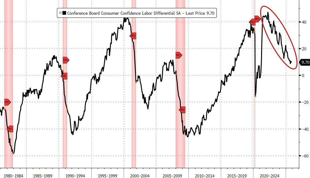 Under the hood, The Conference Board survey shows the trend of a weaker labor market continues…