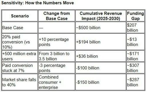 Even with bullish assumptions that include 3 billion users, rapid subscription growth, and a giant slice of enterprise AI spending, the company’s projected revenues are nowhere near its exploding bills for energy and chips, the bank says.