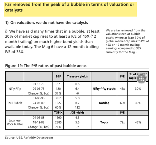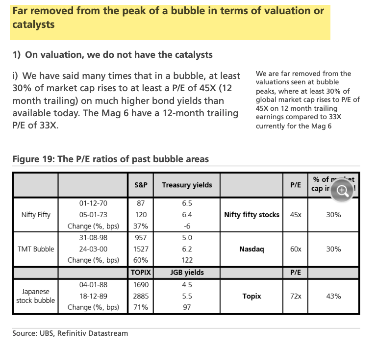 “We also highlight that we believe we are far removed from any of the major catalysts that mark a bubble peak,” he said.