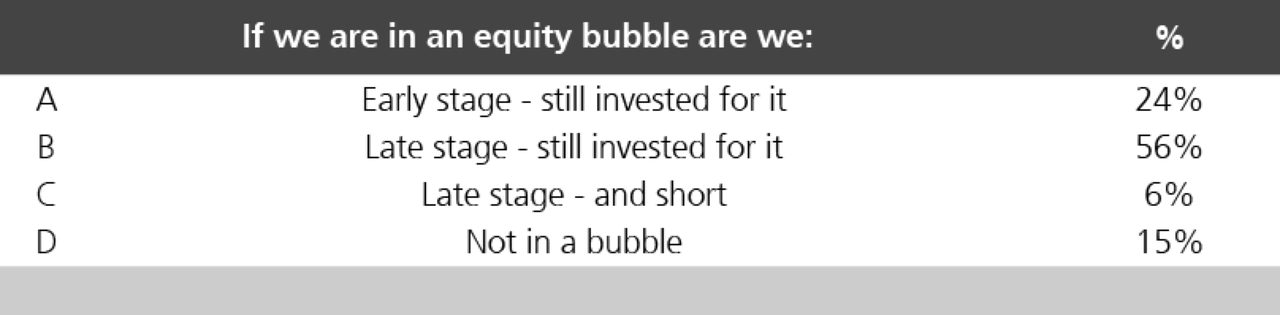 The audience at the UBS European conference held on November 11 was asked: “Are we in a bubble?”