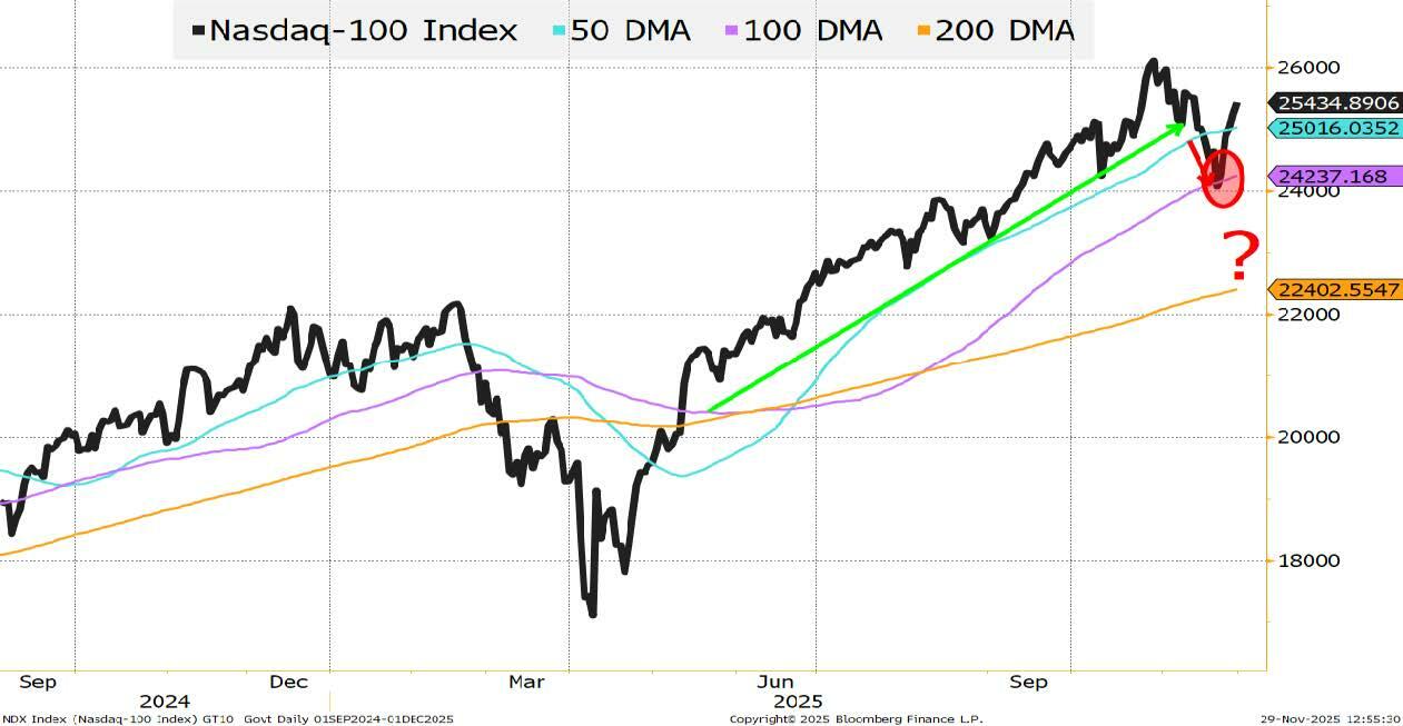 The Nasdaq 100 is up 5.7% (outpacing the “rotation” trade of the S&P 500 Equal Weight which is up 3% in those same trading days).