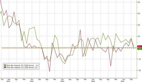 According to Bloomberg Economics, the November PMI pointed to continuing broad economic weakness and hinted at a further down-drift in consumption. Services dropped sharply into contraction, a stark contrast to the flat reading in 2024 after the long October holiday. Manufacturing and construction also remained in contraction, despite a modest seasonal rebound.