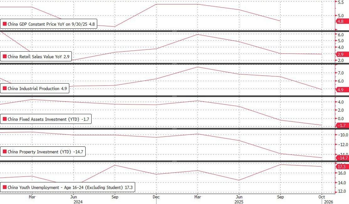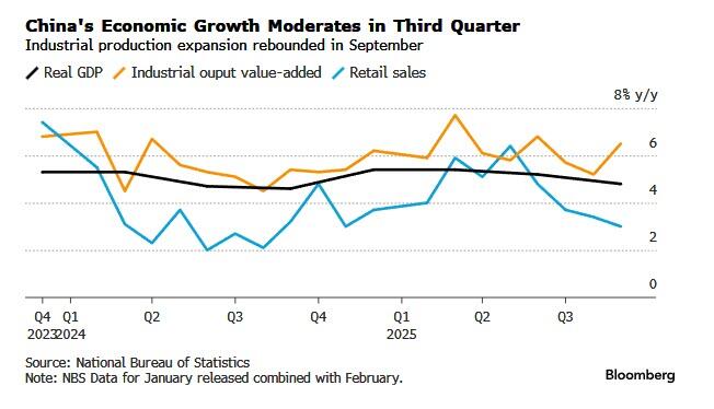 Beyond geopolitical risks, weak domestic demand is still casting a pall over the outlook for Chinese factories. Growth in retail sales slowed for the fifth straight month in October, the longest such streak since the country shuttered shops because of the Covid pandemic more than four years ago.