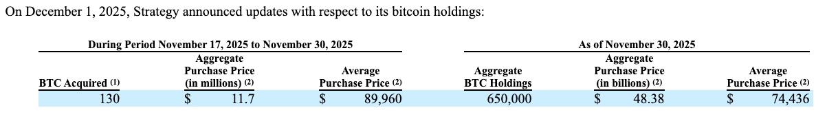 Alongside the launch of the reserve, Strategy disclosed an additional purchase of 130 Bitcoin for $11.7 million, bringing its total holdings to a symbolic value of 650,000 BTC, acquired for $48.38 billion.