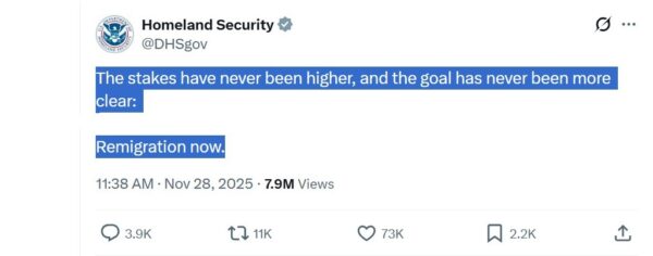 And DHS said, “The stakes have never been higher, and the goal has never been more clear: Remigration now.”