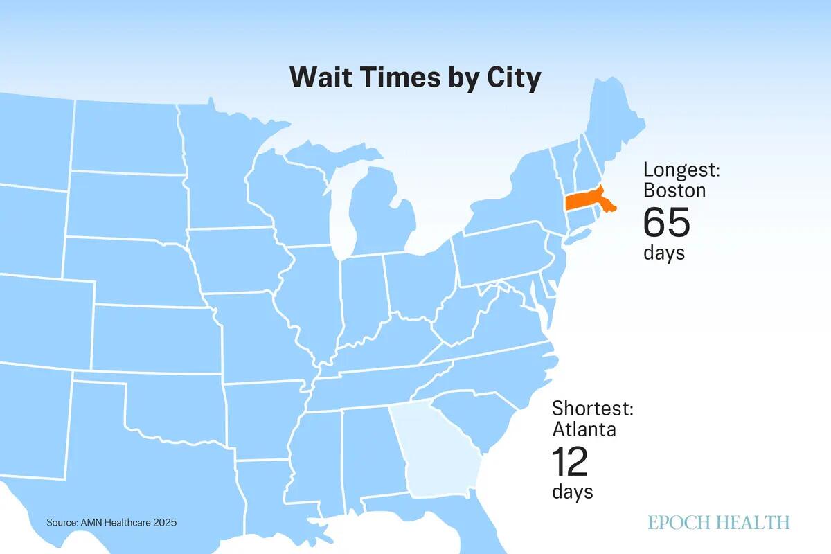 Across all six specialties, average wait times range widely, from weeks in some cities to just days in others. The Epoch Times