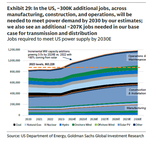 But what happened to the army of nuclear construction workers trained for the reactors we built recently in Georgia, you ask? They quit nuclear to go build data centers… the same data centers which now have no power. As the chart from Goldman below indicates, the US is now short 300,000 engineers (and as much as 500,000) to meet US power demands by 2030.