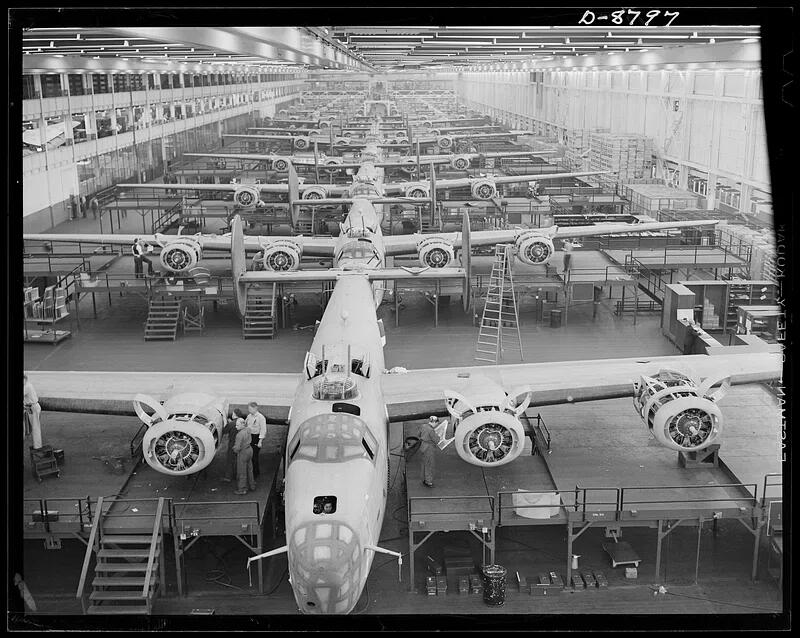 By 1947 the bulk of military production lines had switched to civilian goods. Lines that were producing tanks switched to cars and appliances. Factories that were churning out bombers switched to commercial airliners.