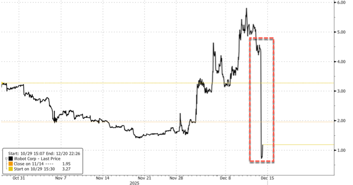 In New York, iRobot’s shares crashed 68% in premarket trading.