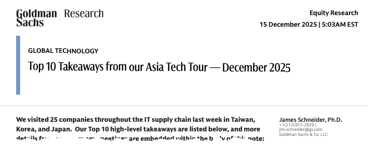 Channel checks in Asia’s tech supply chain are critical and can be used as early signals or leading indicators when trying to gauge the AI bubble and/or global demand for tech, especially in North America and Europe.