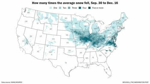 Meteorologist Ben Noll revealed the visually displeasing reality of a strong winter start for the eastern half of the Lower 48 that Democrats don’t want the mainstream to see…