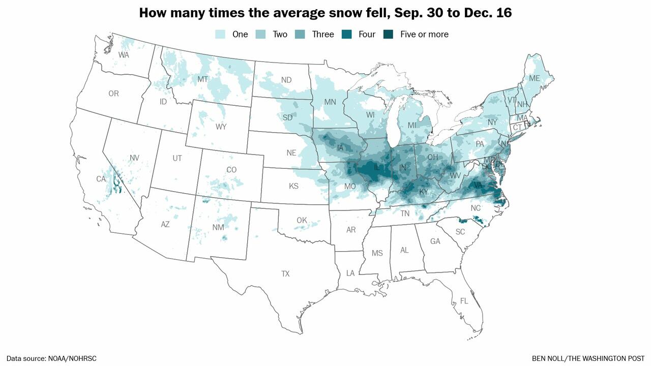 “Fueled in part by an unusually early disruption to the polar vortex, 18 states and D.C. have experienced more snow than average so far this season. In some states, it’s been the snowiest start in almost two decades,” Noll wrote on X.