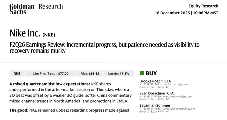 A mixed quarter amidst low expectations: NKE shares underperformed in the after-market session on Thursday, where a 2Q beat was offset by a weaker 3Q guide, softer China commentary, mixed channel trends in North America, and promotions in EMEA.