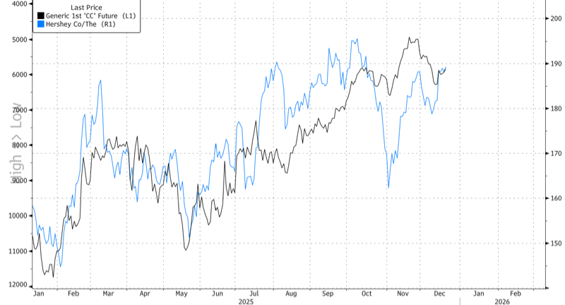 Conversations so far are that any price relief for chocolate at the supermarket won’t show up until the 2H26. We’re watching Hershey next year…