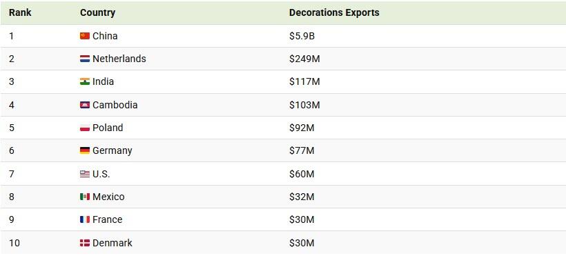 Which Countries Export The Most Christmas Decorations?