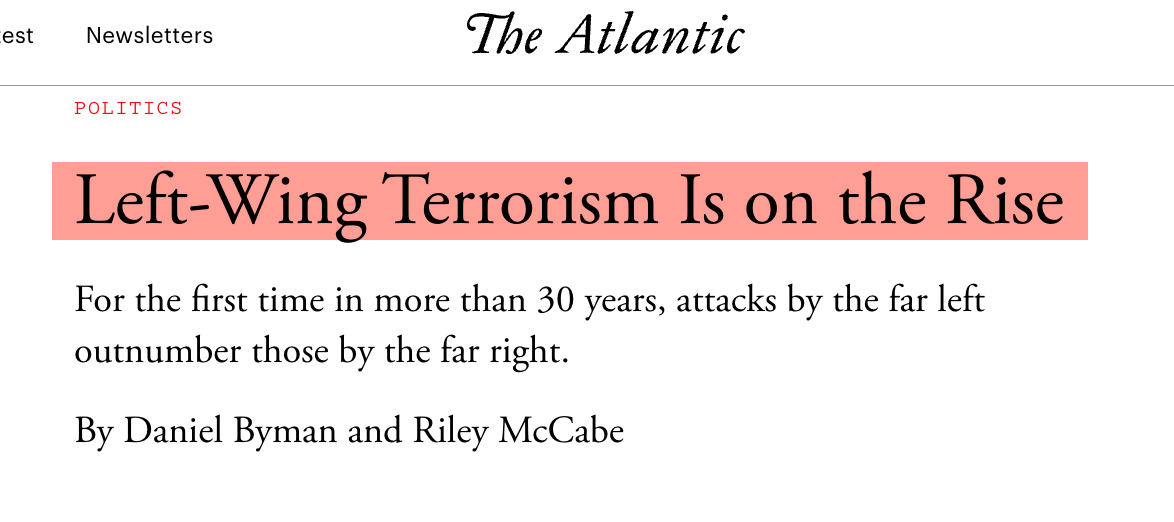 The Atlantic is absolutely correct: “Left-Wing Terrorism Is on the Rise.” And perhaps we just unveiled why…