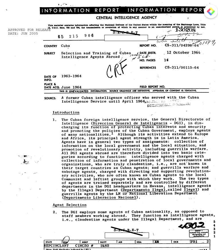 But declassified CIA documents dating back to the Cold War describe a consistent operational method: foreign recruits were brought to Cuba for training in intelligence tradecraft or guerrilla sabotage and were received by DGI officers posing as ICAP officials. ICAP functioned as the intake valve – political cover for intelligence operations designed to cultivate long-term assets rather than short-term spies.