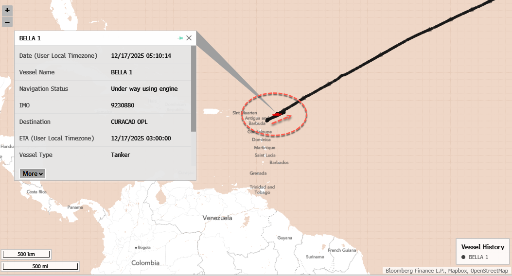 Sources familiar with the sanctioned Bella-1 told Bloomberg that the tanker retreated into the Atlantic after being pursued by U.S. Coast Guard forces. The tanker failed to comply with instructions to move to calmer waters for boarding.