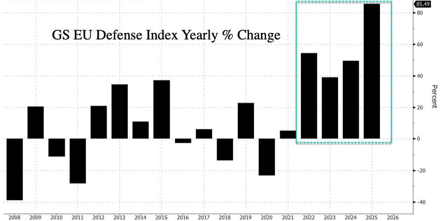 Since Russia invaded Ukraine in early 2022, the GS European Defense Index has delivered outsized annual returns.