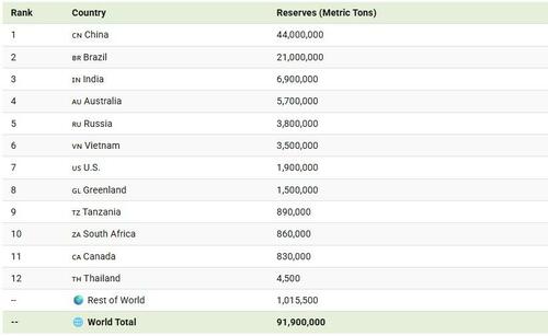 The distribution is highly uneven. China alone holds nearly half of the global total, followed by Brazil’s sizable deposits. By contrast, many advanced economies have limited reserves.