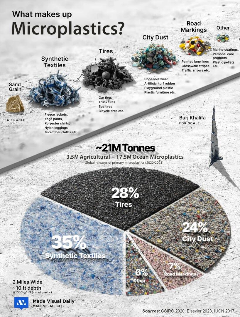 Using data from the IUCN, CSIRO, and Elsevier, this graphic, via Visual Capitalist, by Made Visual Daily breaks down what actually makes up these particles and where they come from.