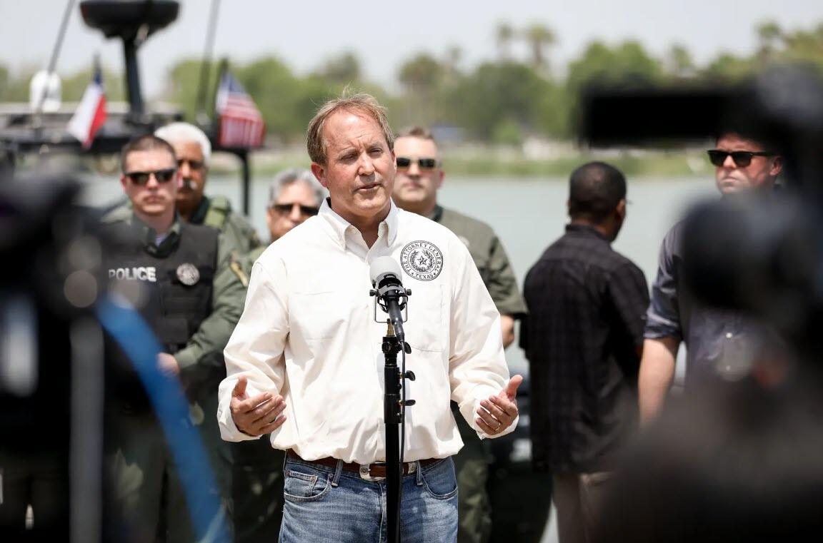 Texas Attorney General Ken Paxton at a press conference in Anzalduas Park near McAllen, Texas, on April 28, 2021. Charlotte Cuthbertson/The Epoch Times