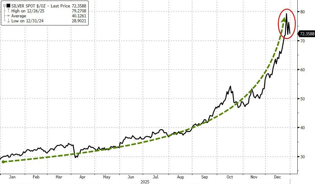 As we detailed earlier in the week, the immediate catalyst for silver’s sudden slump was not a single factor but a multitude that cracked the massively overbought precious metal (including export restrictions, US and China margin hikes, ETF flows, etc).