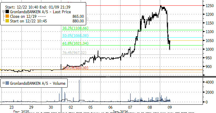 The 42% rally in Bank of Greenland shares this year, which has since retraced roughly 20% of those gains, has been entirely headline-driven, linked to the Trump administration’s efforts to acquire the mineral-rich, strategically located territory in North America, rather than by fundamentals.