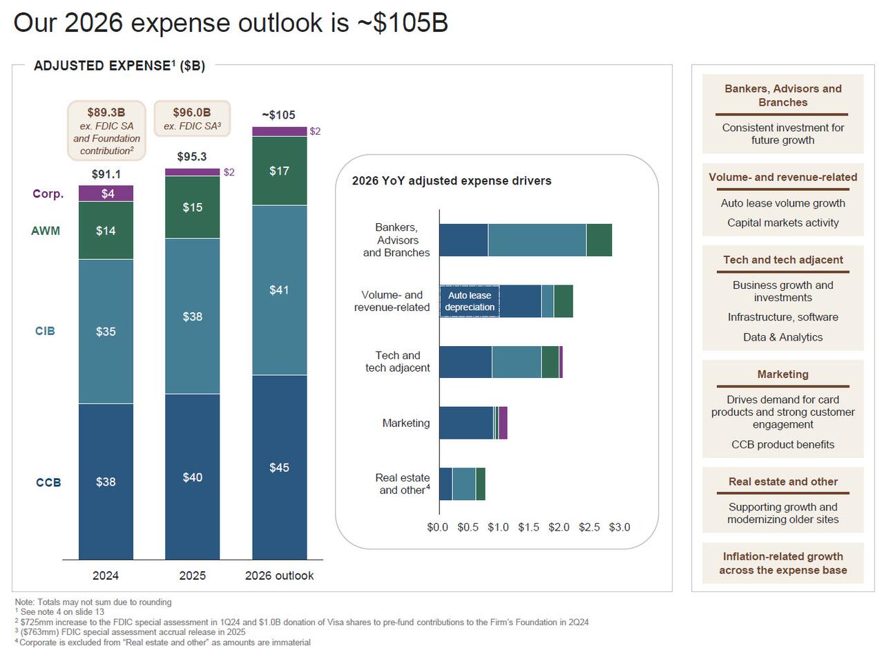 Finally, while the historical numbers were mixed, all eyes were on the bank’s guidance. Here, JPM reiterated what we already knew – expenses would be $105bn for FY26…