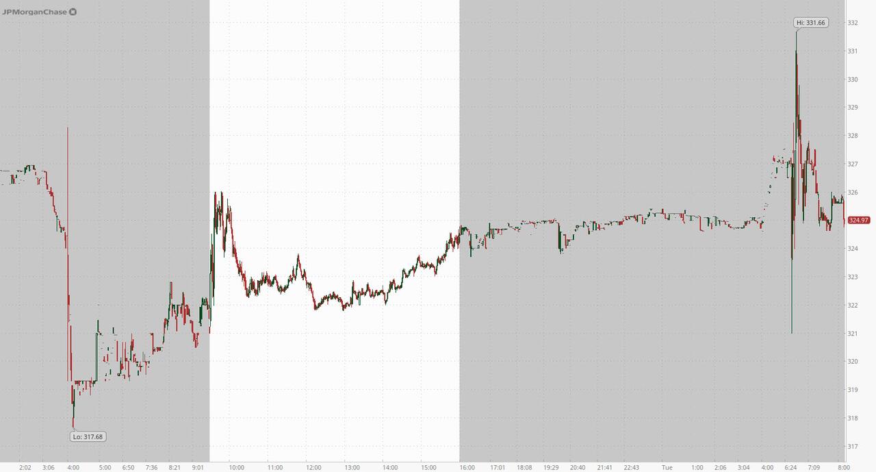 +1% pre mkt… PPNR beat driven by better NII, fees and lower expenses (lower comp). In his commentary, Dimon noted a resilient economy with consumers continuing to spend though acknowledged that labor markets have softened and the market seems to underappreciate potential hazards… the key focus here will be