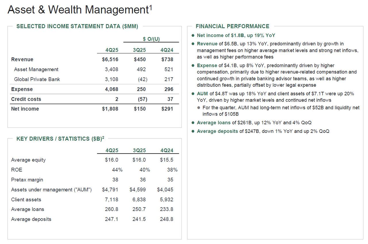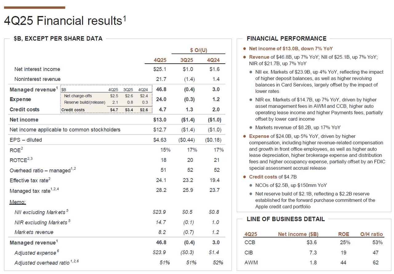 - Full year 2025 Net Income was $57 billion, which short of beating its 2024 record, which was the highest annual profit in the history of American banking.