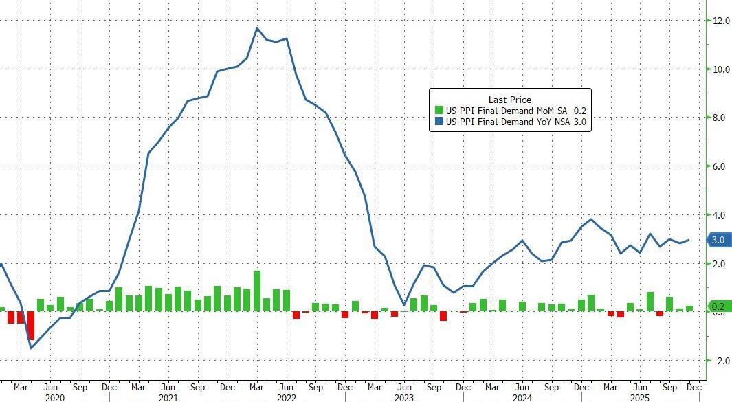 Excluding food and energy, the PPI was unchanged from the prior month and climbed 3% from November 2024.