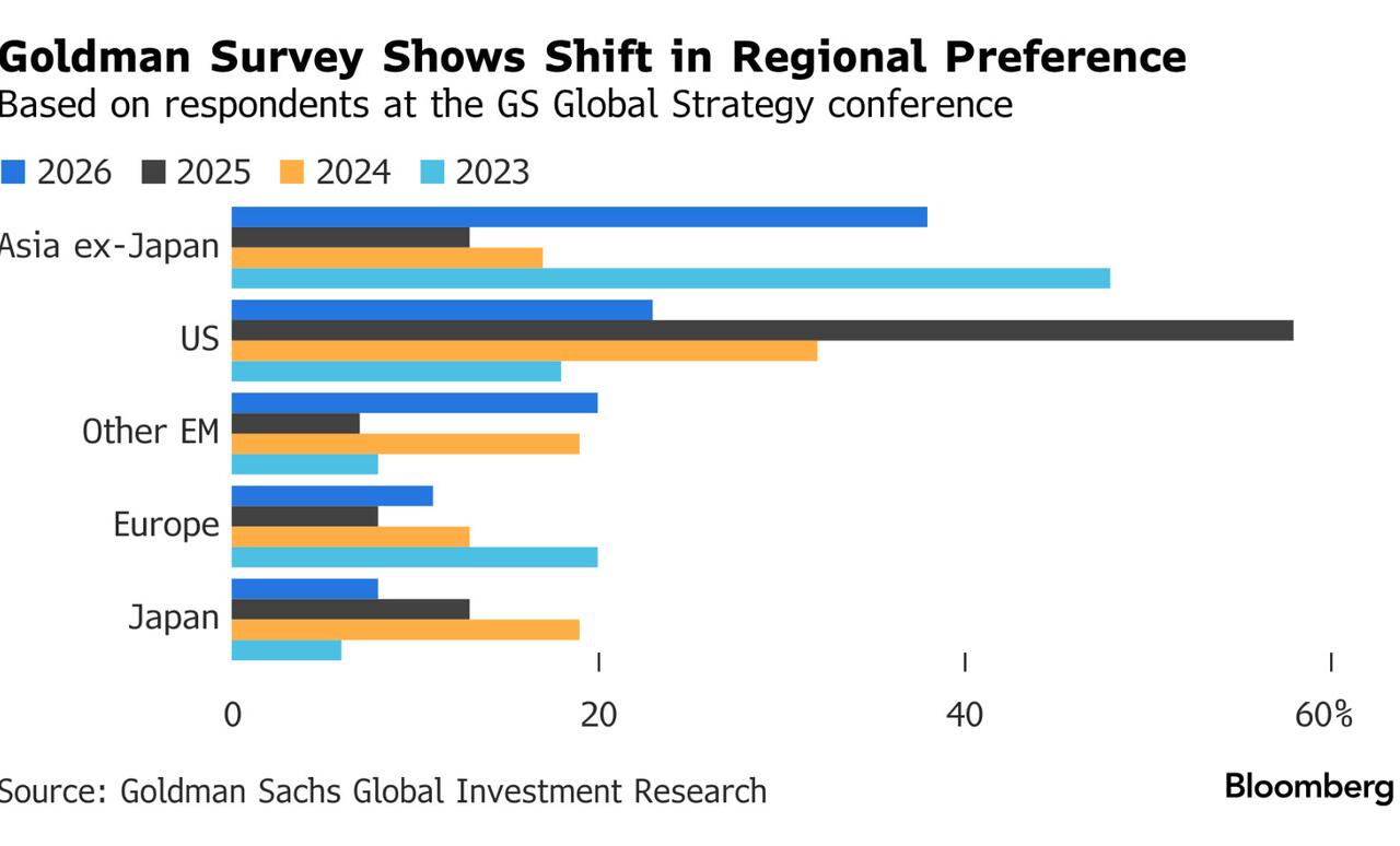 The renewed optimism around AI follows weeks of steady rotation away from mega-cap technology stocks and toward a broader set of companies leveraged to improving growth prospects. The trend saw the S&P 500 post its first back-to-back losses on Wednesday even though a majority of its members advanced.  The rotation trade sweeping through equities is highlighted in a Goldman Sachs survey. “Technology remains the top pick, though its lead has narrowed compared to last year — mirroring the decline in enthusiasm for the US market,” strategist Guillaume Jaisson wrote.