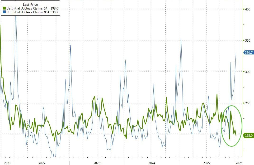 Interestingly, the unadjusted data surged higher (330k) as its seasonal pattern continues.