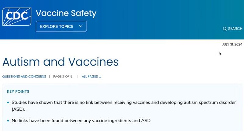 The CDC cites a series of authoritative reviews — including the 1991 and 2012 Institute of Medicine’s assessments, and the Agency for Healthcare Research and Quality’s review in 2021 — all concluding that the evidence was “inadequate to accept or reject” a causal relationship between early-life vaccines and autism.