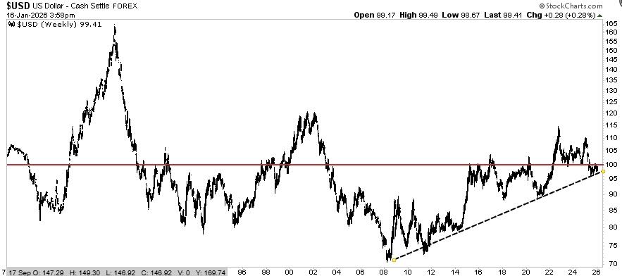 Despite geopolitical concerns, questions about the Federal Reserve’s independence, and policy uncertainty, the US Dollar remained firm, trading near equilibrium since 1976. Furthermore, the dollar remains in a strong bullish uptrend from its 2008 lows, underscoring that narratives of dollar debasement and dedollarization remain false.