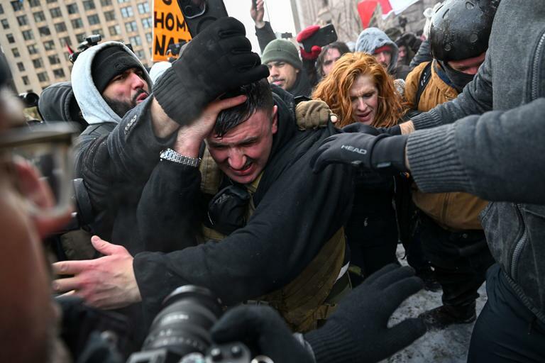 Jake Lang was just PULLED INTO and TAKEN AWAY by a violent mob!