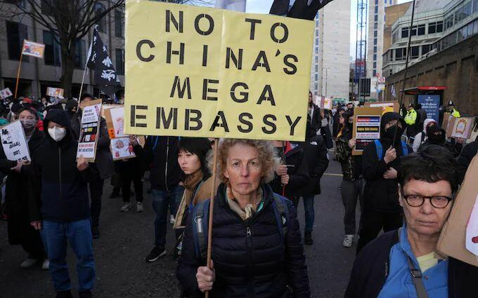 Hundreds of people on Saturday rallied in London against Beijing’s controversial new “mega” embassy – days after the Daily Telegraph revealed that Chinese officials plan to construct secret underground chambers right next to some of Britain’s most sensitive communications infrastructure.
