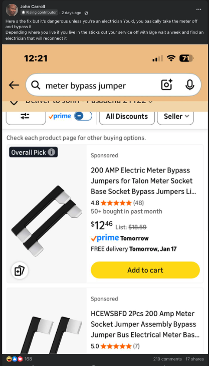 Some residents are instructing folks how to bypass meters to get free power. That’s how bad the power crisis is in Maryland.