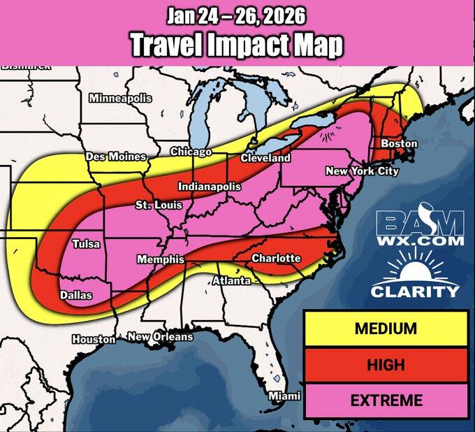 An intense Arctic blast and a sprawling winter storm system, drawing comparisons to the Blizzard of ’96, are set to sweep across the eastern half of the US this weekend.