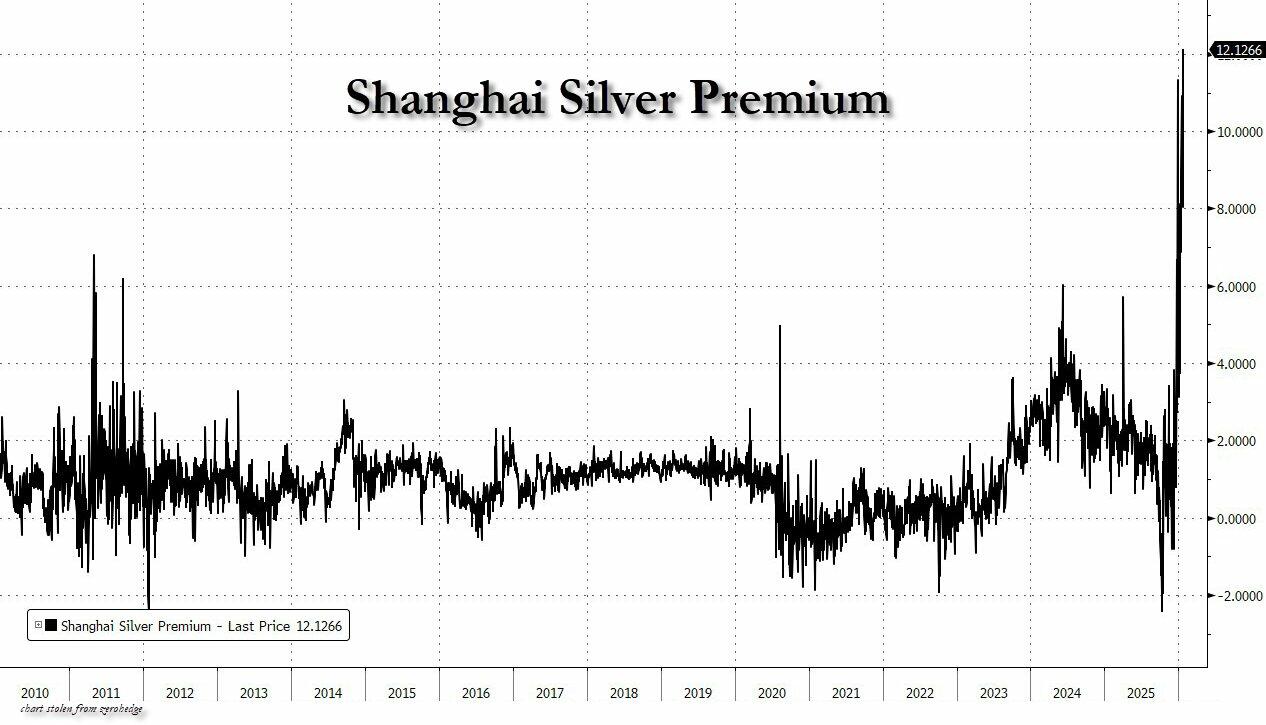 … as the Shanghai silver premium jumped 50% overnight to a record 12.