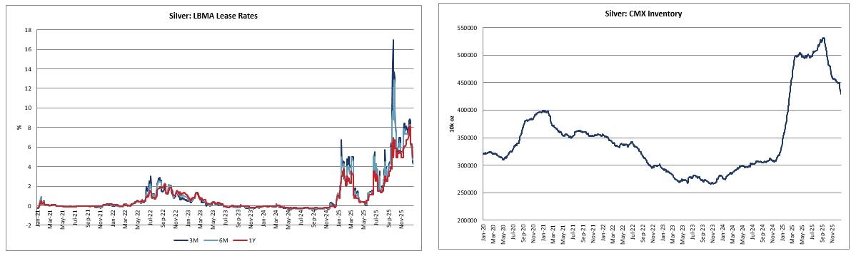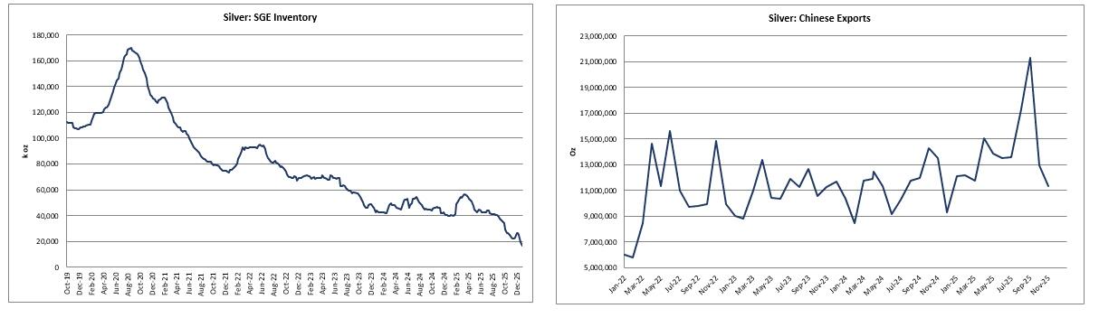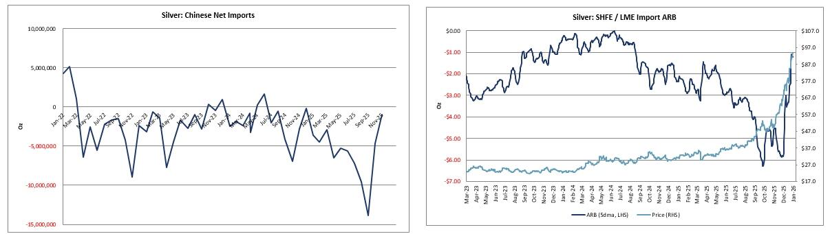 Domestic tightness has caused significant SHFE / CMX strength, which resulted in Dec25 net imports of 1mn toz vs Jan25-Nov25 monthly average of 5.8mn toz.