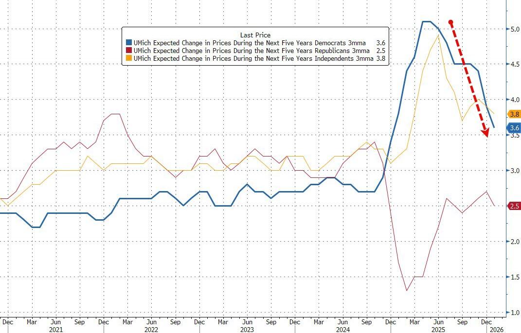 While the overall improvement was small, UMich Survey Director Joanne Hsu admits “it was broad based, seen across the income distribution, educational attainment, older and younger consumers, and Republicans and Democrats alike.”