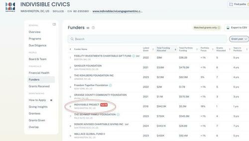 As for Indivisible Project, the typical foundations that fund chaos nationwide also fund this entity.
