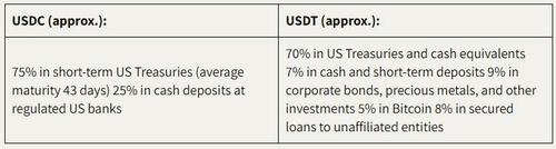 Both are backed by reserves, but the composition of those reserves varies: