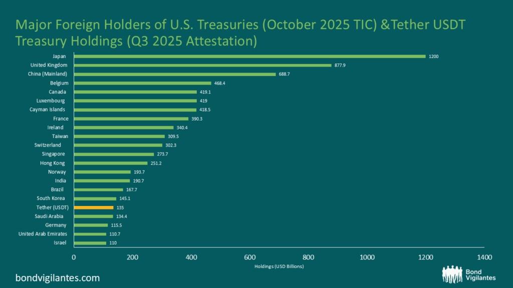 Stablecoins are becoming major players in the treasury market with Tether now the 17th largest holder of treasuries on the planet.